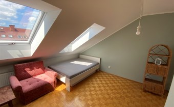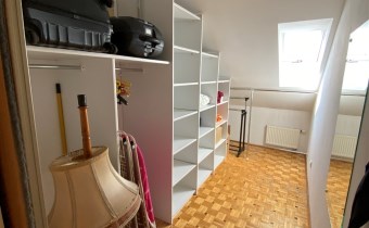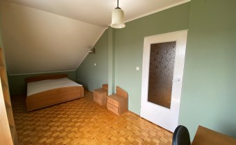 Na poddaszu dwie oddzielne sypialnie z dużą komfortową łazienką oraz dużą wygodną garderobą i niewielkim przedpokojem.